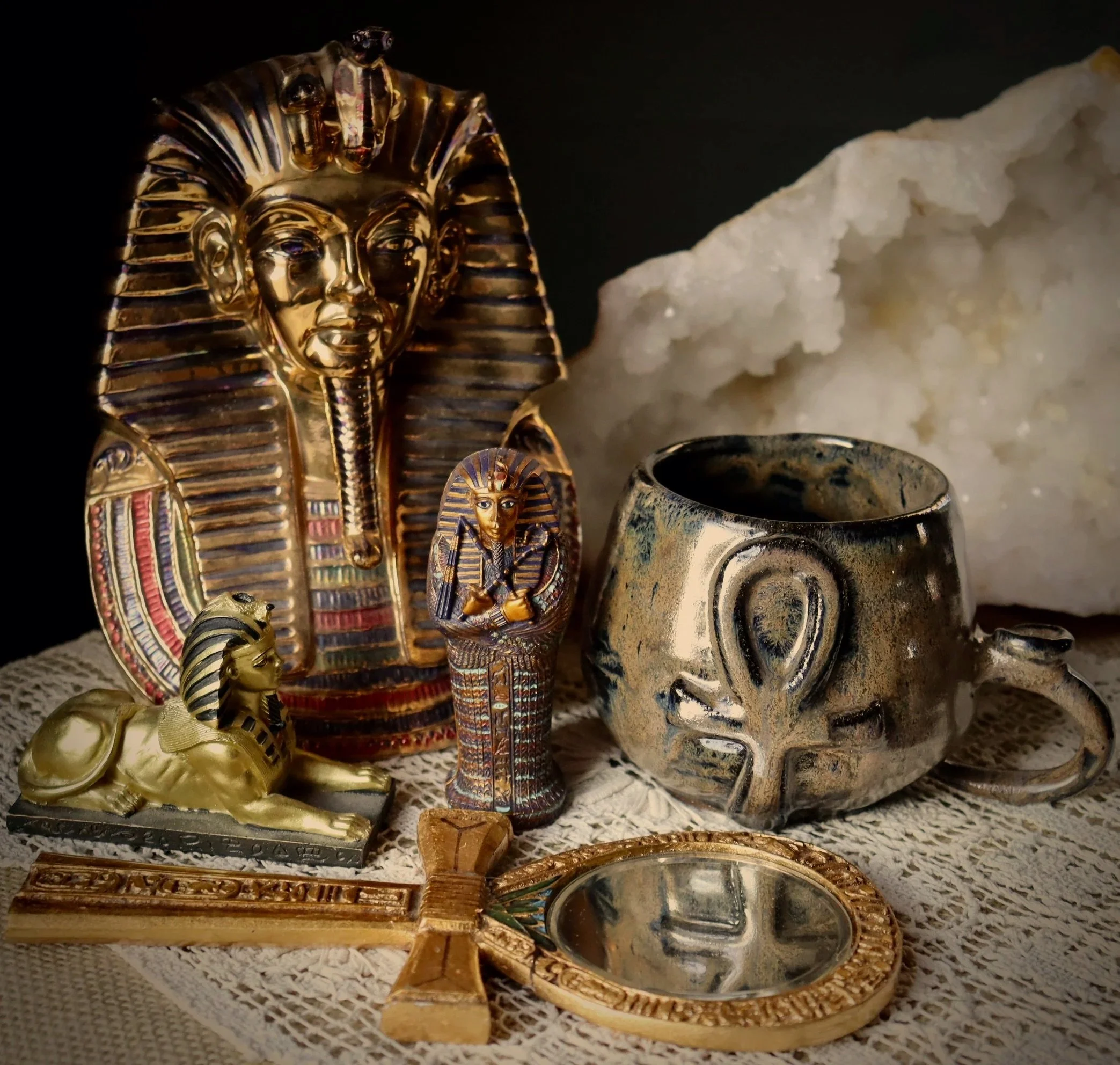 Pottery inspired by the allure of Ancient Egypt; the mysteries of an ancient civilization, hidden beneath time, encased in mysticism.