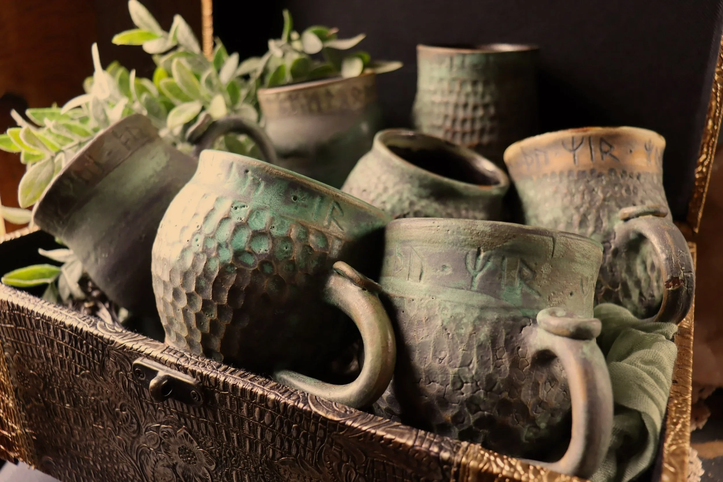 Pottery inspired by Nordic, Icelandic & Celtic archaeological findings; Intended to look ancient, weathered & worn. Mysteries left to the hands of time.